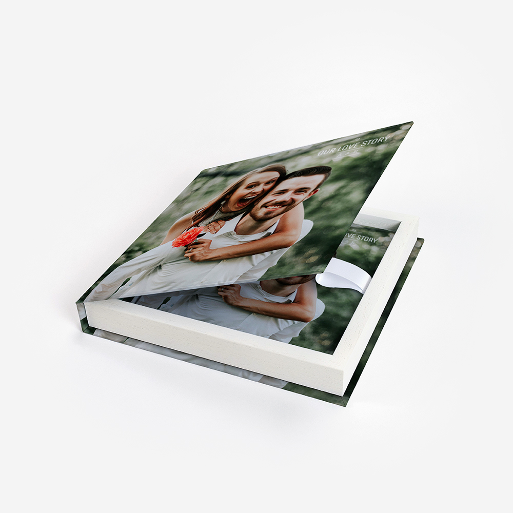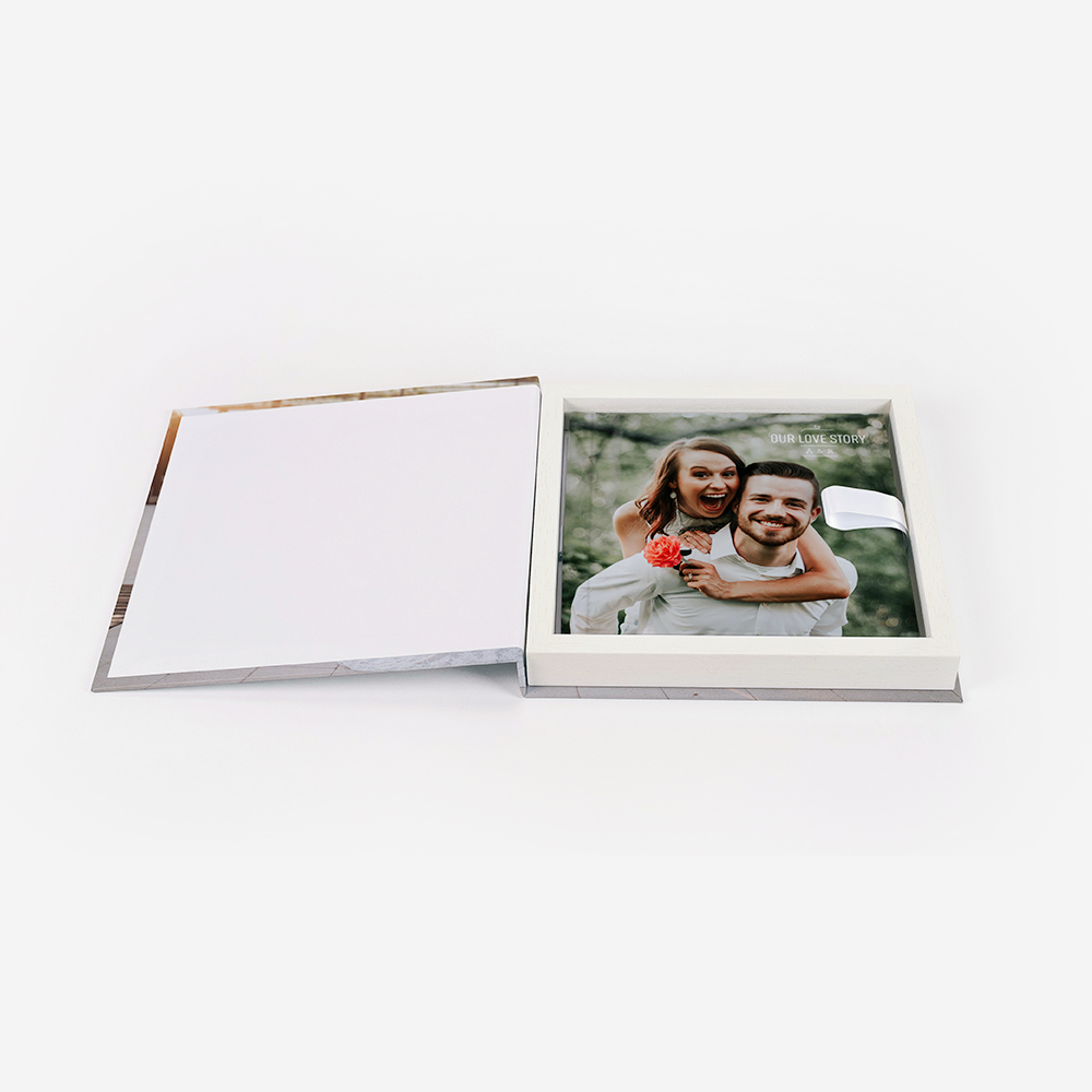 Porque um álbum é algo que vai querer guardar para sempre, criamos soluções para proteger e preservar os seus preciosos álbuns de família. Pode escolher uma Box revestida em papel fotográfico, totalmente personalizável por si (inclusive a lombada) com um aro em madeira disponível em preto ou branco.