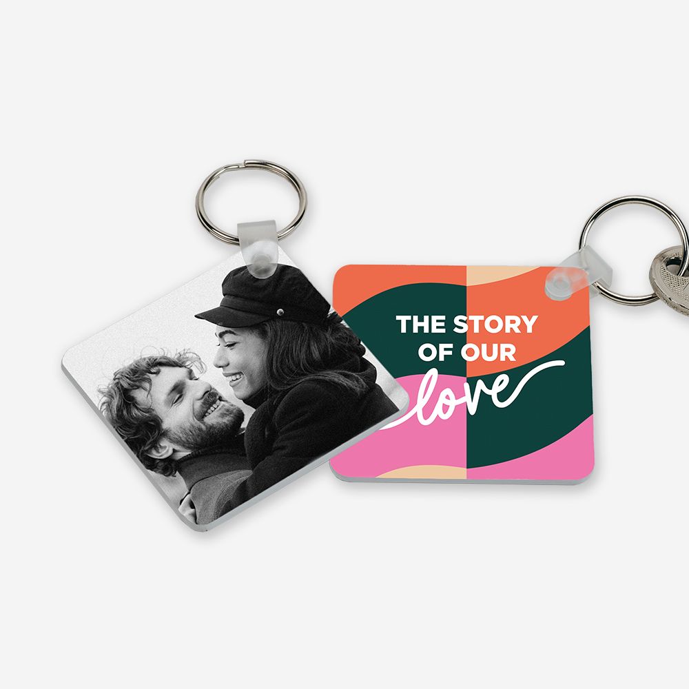 Com formato quadrado e personalização total (100%) em ambas as faces, este porta-chaves transforma qualquer foto ou frase num presente romântico e inesquecível.